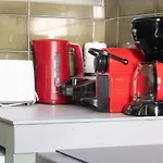 Balkong, kylskåp och sitthörna ingår i rummen. Andra bekvämligheter inkluderar ugn och tvättmaskin.